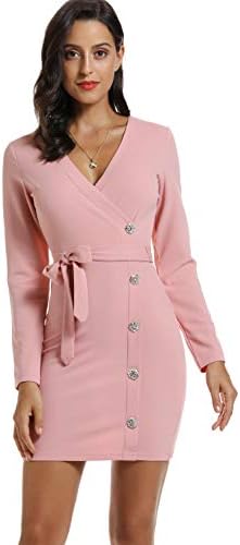 9e06729ea747bb93d2afb9bfaba425eb0926ed64f44c29591c65a2889e46ae86 | Item: "Maijoy Womens Long Sleeve V Neck Button Tie Waist Wrap Bondycon Dress"