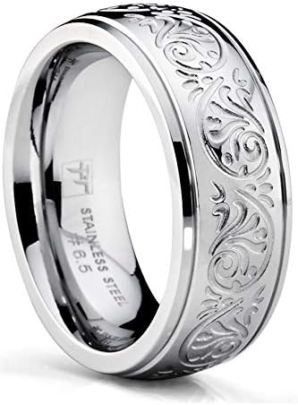 This beautiful ring is 7MM in width and comfort fit. It is all high polish with Florentine laser etched design. Our Stainless Steel rings are hypoallergenic. All rings come with a 100% Money Back Guarantee and ... | Bonndorf 7MM Stainless Steel Ring with Engraved Florentine Design Sizes 4 to 13 | 12.99 | 4.5 | Here is a summary of the product:
